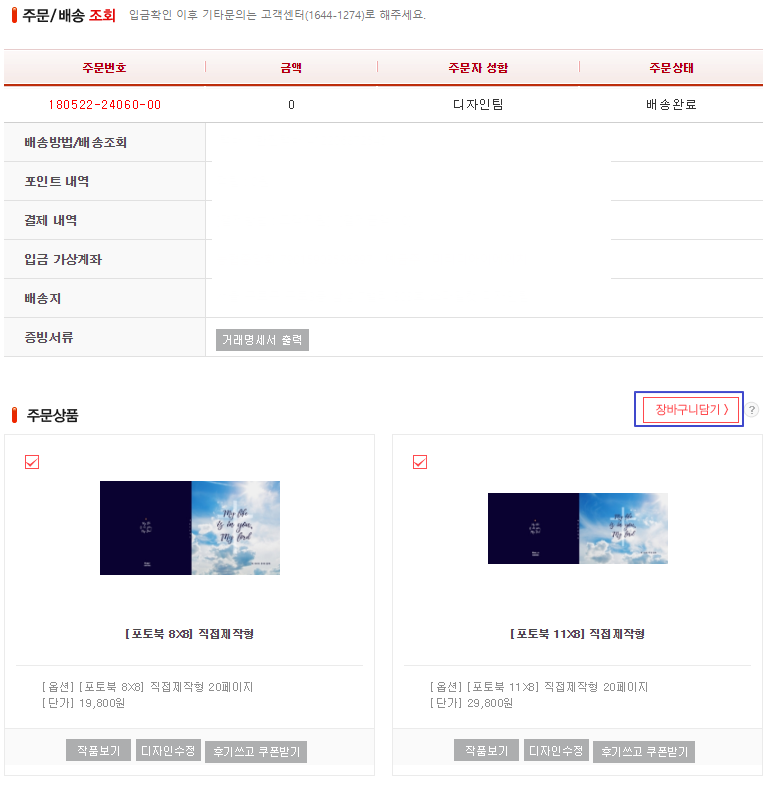 ※ 장바구니 담기 서비스는, 주문일로부터 30일 이내 상품만 선택 가능합니다.(PC/모바일 공통)